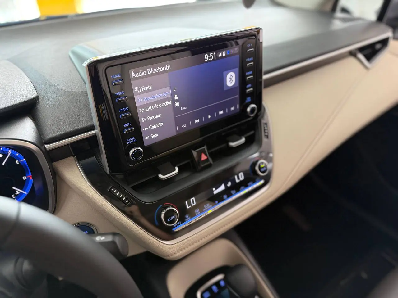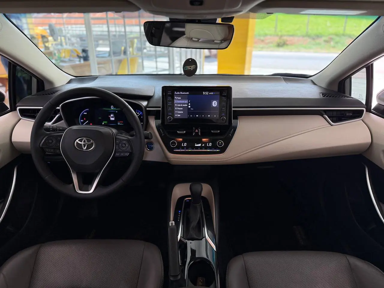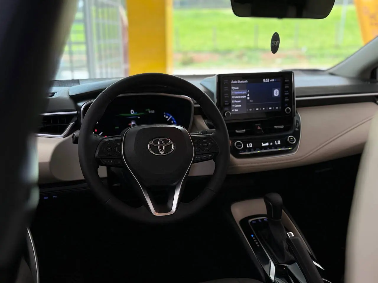 O Toyota Corolla Altis Premium Hybrid 1.8 é aquele sedã feito para quem busca conforto de verdade, tecnologia de ponta e uma economia que surpreende até quem já está acostumado com carro híbrido. Ele combina o tradicional motor 1.8 da Toyota com dois motores elétricos, criando um sistema inteligente que alterna sozinho entre os modos para entregar sempre a condução mais eficiente. Logo ao rodar com ele, você já percebe o silêncio e a suavidade. Em baixas velocidades, ele pode andar apenas no modo elétrico, sem gastar combustível, e nas retomadas o câmbio CVT trabalha de forma contínua, sem trancos, deixando a experiência muito mais confortável. Por dentro, o carro entrega um acabamento premium, com bancos em couro, ar-condicionado digital dual zone e uma multimídia completa com espelhamento. Tudo é pensado para quem gosta de conforto e praticidade no dia a dia. A direção elétrica é leve na cidade e firme na estrada, deixando a condução mais segura. O design também chama atenção: faróis full LED, rodas de liga leve e um visual moderno que reforça a elegância do modelo. A presença da chave presencial, botão Start/Stop e vários detalhes tecnológicos deixam o carro ainda mais completo. Na parte de segurança, o Corolla Altis Premium traz o pacote Toyota Safety Sense, que inclui piloto automático adaptativo, alerta de colisão com frenagem automática, assistente de permanência em faixa, farol alto automático, além de 7 airbags e controle de tração e estabilidade — tudo pensado para proteger você e quem está no carro. No geral, ele é o carro perfeito para quem quer um sedã sofisticado, super econômico, confortável e com a confiabilidade que só a Toyota entrega. Um híbrido que realmente faz diferença no bolso e no dia a dia.