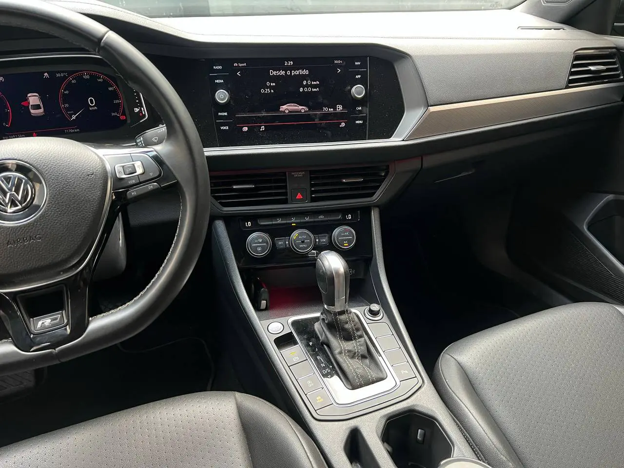 Sob o capô, o Jetta R-Line é equipado com o eficiente motor 1.4 TSI turbo com injeção direta, capaz de entregar 150 cv de potência e um torque de 25,5 kgfm disponível já em baixas rotações (a partir de 1.400 rpm). Esse conjunto proporciona aceleração rápida, com o 0 a 100 km/h feito em cerca de 8,9 segundos, e uma velocidade máxima de aproximadamente 210 km/h. O câmbio automático de 6 marchas oferece trocas suaves e precisas, ideal tanto para o uso urbano quanto em viagens.