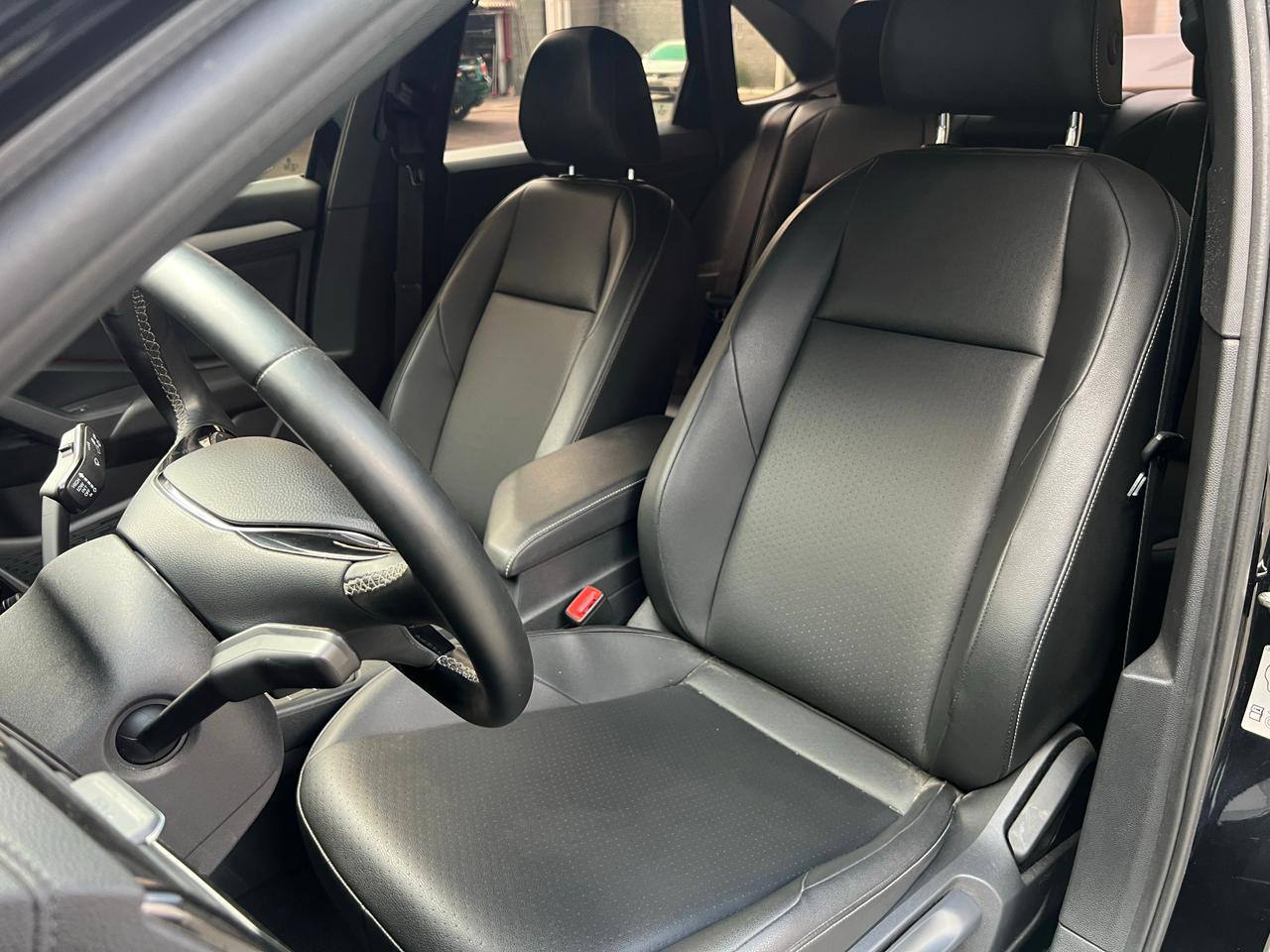 Um dos grandes destaques do modelo é o pacote R-Line, que agrega itens estéticos exclusivos como para-choques mais agressivos, saias laterais, rodas de liga leve aro 17, detalhes em preto brilhante e um acabamento interno mais esportivo, incluindo volante multifuncional com base reta, bancos parcialmente em couro com costuras contrastantes e soleiras personalizadas.
